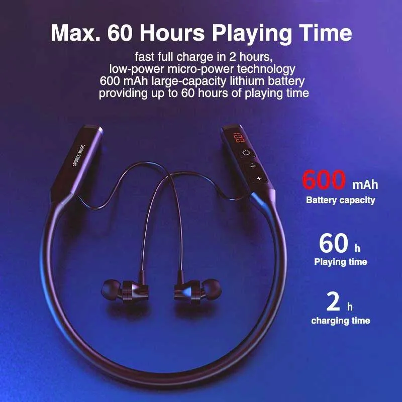 Profitez d’une expérience audio exceptionnelle avec ce Casque Bluetooth avec Radio Sans Fil à bande de cou, conçu pour offrir 60 heures d’autonomie. Idéal pour les amateurs de musique, les podcasts ou les appels mains libres, ce casque multifonction combine le confort, la technologie et une qualité sonore impeccable.